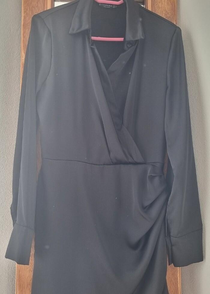 Stradivarius marka saten elbise. 1 kez bir davette giyildi. Kusuru yok. Görselde soluk çıkmış ama değil simsiyah