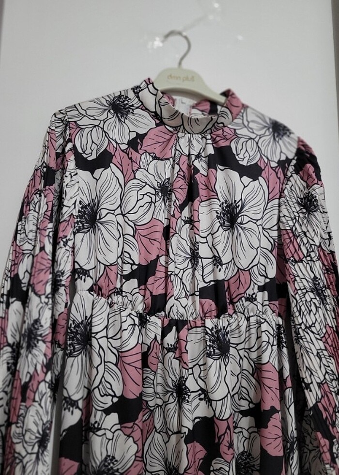 Çiçekli saten elbise hiç giyilmedi temiz ürün
