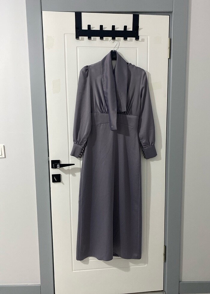 Saten kumaş elbise boy 135 cm iki kol arası 40 cm bel 35 cm kemerlidir hiçbir kusuru yoktur kalıbı dardır.