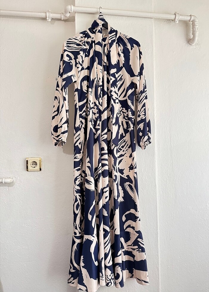 Saten uzun desenli elbise 2 kere kullanıldı 140 cm tertemiz kemerli 36 beden ama aşırı oversize xl kadar olur marka temsilidir kumaşı aşırı kaliteli ve ağırdır