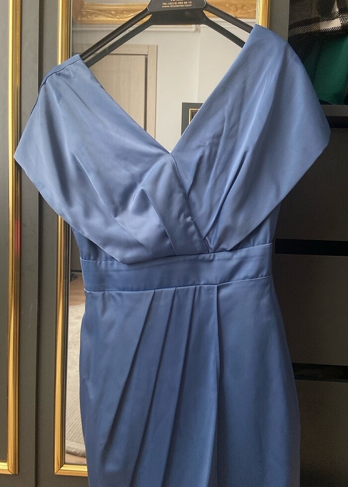 Midi boy yırtmaç detaylı saten abiye