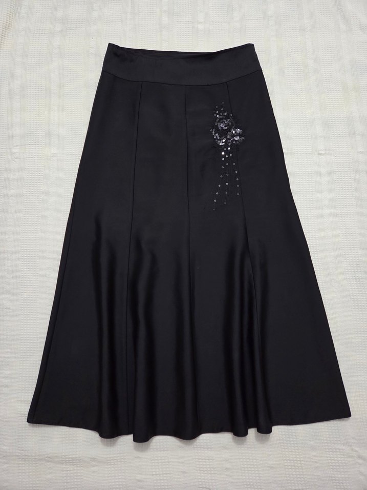 Pul işleme detaylı çan kesim siyah saten etek hiçbir sorunu yok fazlalıktan dolayı satıyorum çok şık bir görünümü var içi astarlıdır