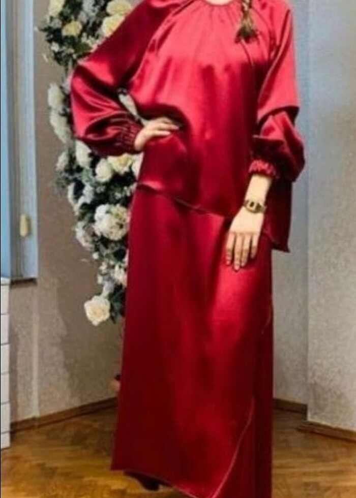 Türkan çelik mağazasından alınmıştır saten kumaş çok tarz bir takım etiketi üzerinde 40 beden salaş kalıp etek beli lastikli #satentakım #tesettürgiyim #abiye #tesettürtakım #tesettür #etek