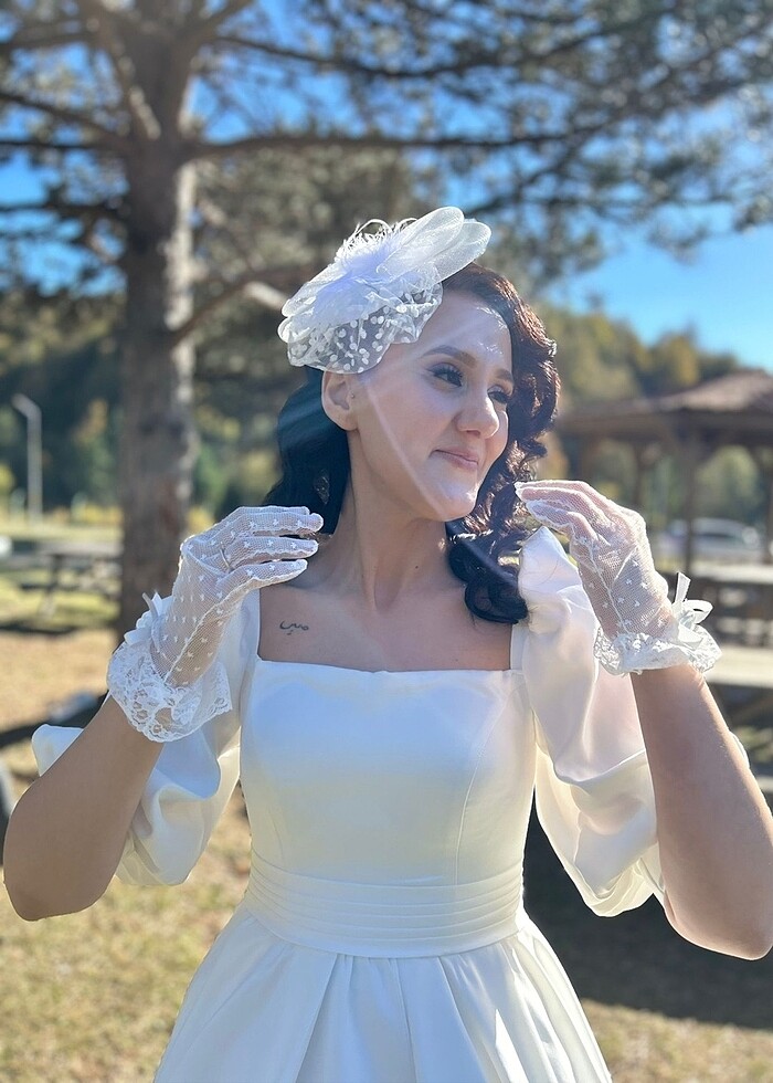 Pinterest model gelinliğim satılıktır. 1.74 boy,65 kg olarak spor ayakkabıyla giydim. Arkası bağlamalı beden konusunda sıkıntı olmaz. Duvak ve saç aksesuarlarıyla eldiveni özelden fotoğraf atıp beğenilirse hediye edebilirim