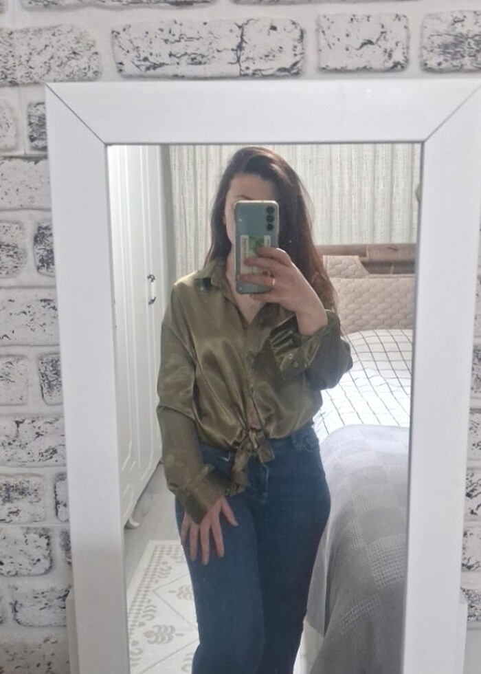 Haki yeşili saten gömlek 1 kere giyildi tertemiz