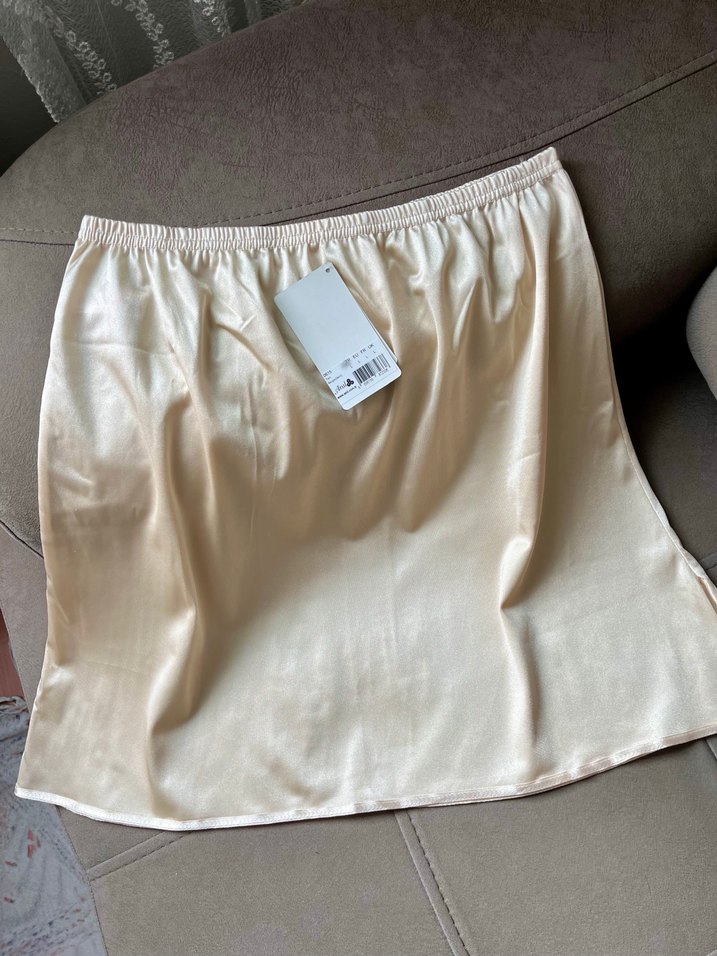 Parlak bej saten görünümlü, düz desenli, normal boy, dar kesim jüpon , rahat ve şık bir seçim. ✨