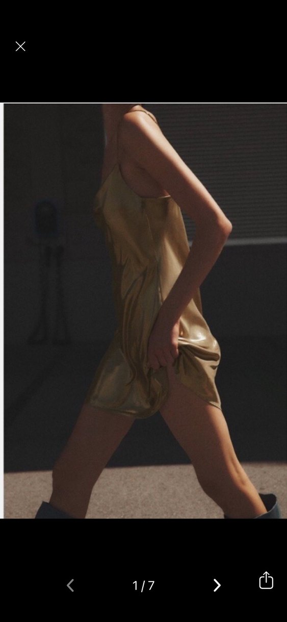 Bu askısız mini elbise, dökümlü tasarımı ve parlak bej saten görünümlü dokusuyla salaş bir kesime sahiptir, sokak modasına uygundur. ✨
