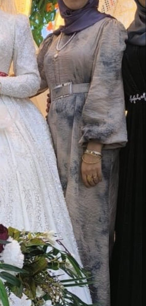 saten ipek karışımı kumaştan yapılmış, uzun kollu, hakim yakalı, â kesim ve Pembe mor tonlardauzun elbise. düğün için uygun, dökümlü tasarıma sahiptir. 40 42 beden için uygun