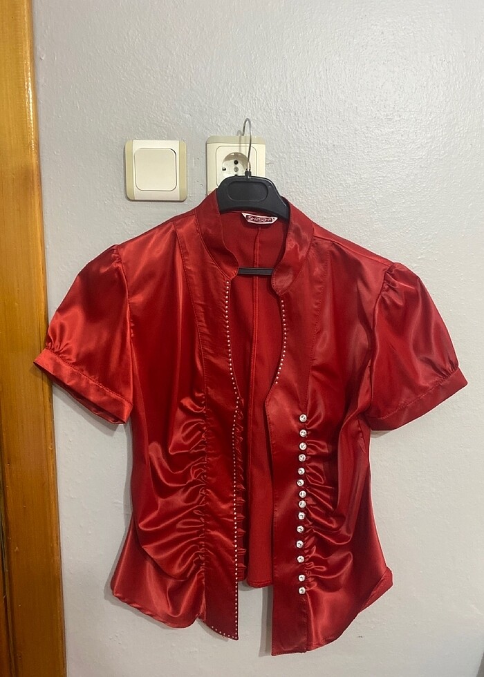 Saten kırmızı bluz