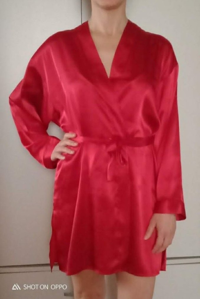 Kapatan mağaza ürünü,kaliteli satenden bir sabahlık.Rengi fotoğraftakinden daha hoş aslında,bir tık daha koyu.NBB kalitesinde olduğu için o şekilde işaretliyorum.