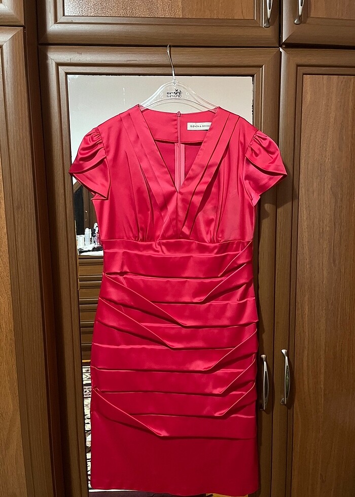 Aşırı şık saten abiye elbise, mercan rengi capcanlı
