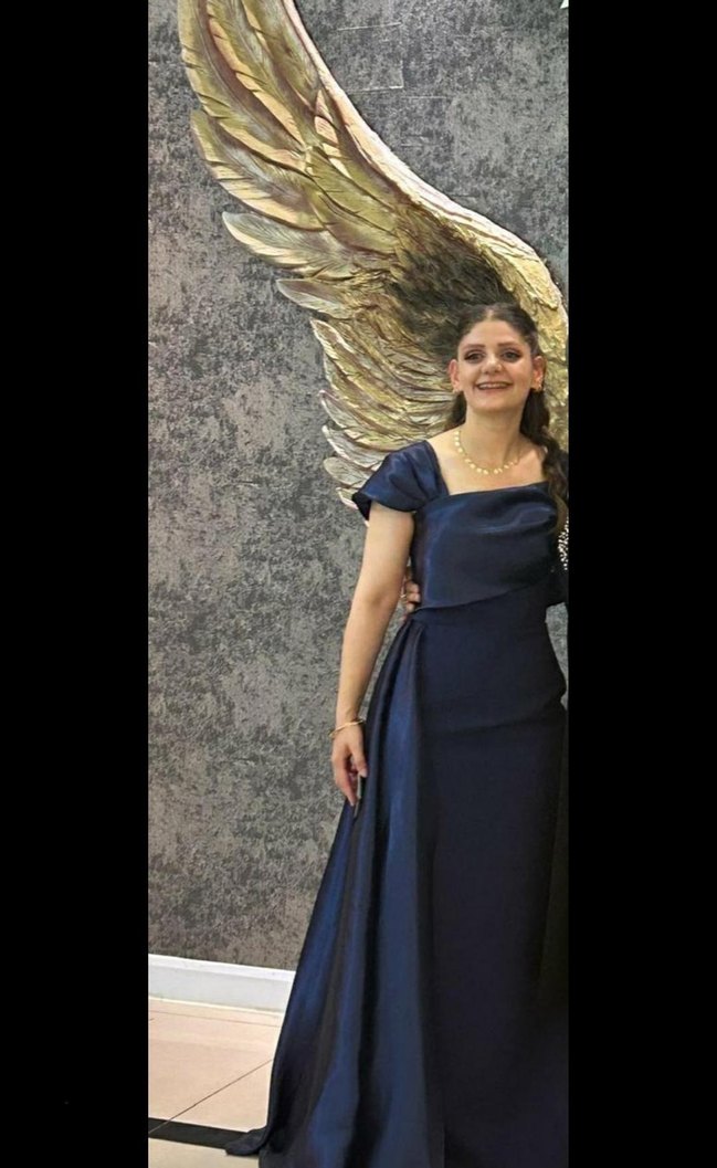 Saten Kumaşlı Lacivert Uzun Abiye Elbise