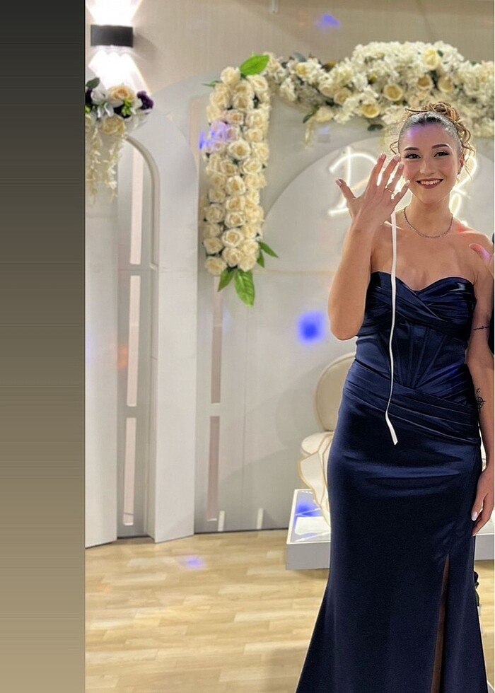 Saten lacivert nişan elbisem. Çok rahat ve severek giydiğim bir elbise. Sadece nişanımda giydim. Kumaşı duruşu yırtmacı herşeyi çok güzel. Kendim ocak ayında 7000 ₺ almıştım.