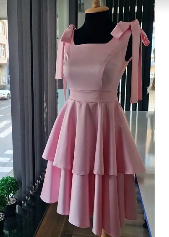 Ürün hiç kullanılmadı yeni toz pembe renginde saten elbise mezunıyet,düğün,doğumgünü elbisesi