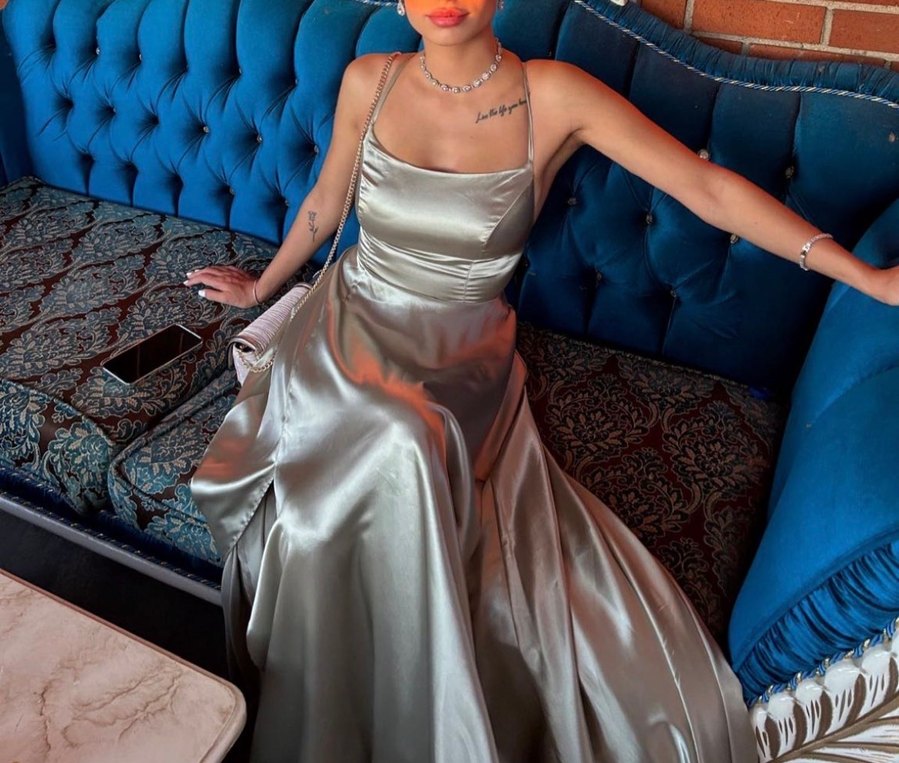 saten mint yeşili Uzun Askılı Kadın Abiye Elbise