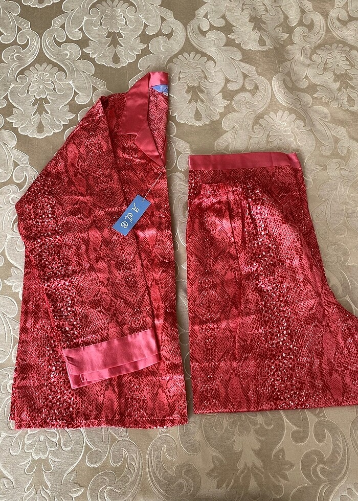 Saten önü düğmeli pijama takımı