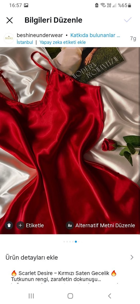 Saten Parlak Kırmızı İnce Askılı Gecelik