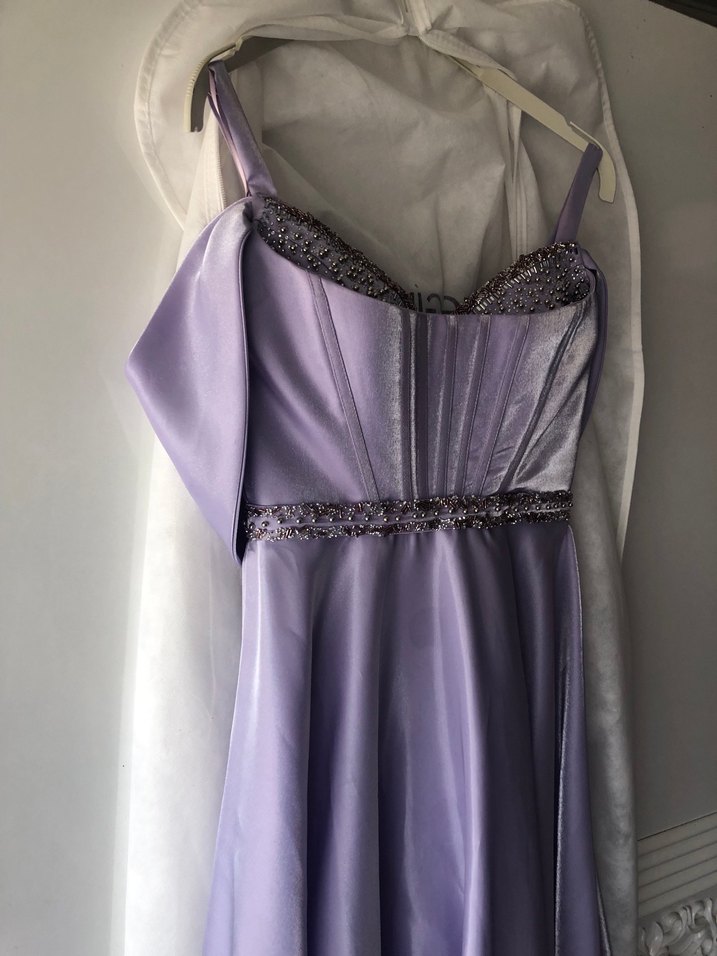 Parlak mor renkli, straplez ve işlemeli detaylara sahip, drapeli uzun abiye elbise. Fit kesimiyle şık ve gotik bir tarz sunar. 1 kez giyildi çok temiz ürün