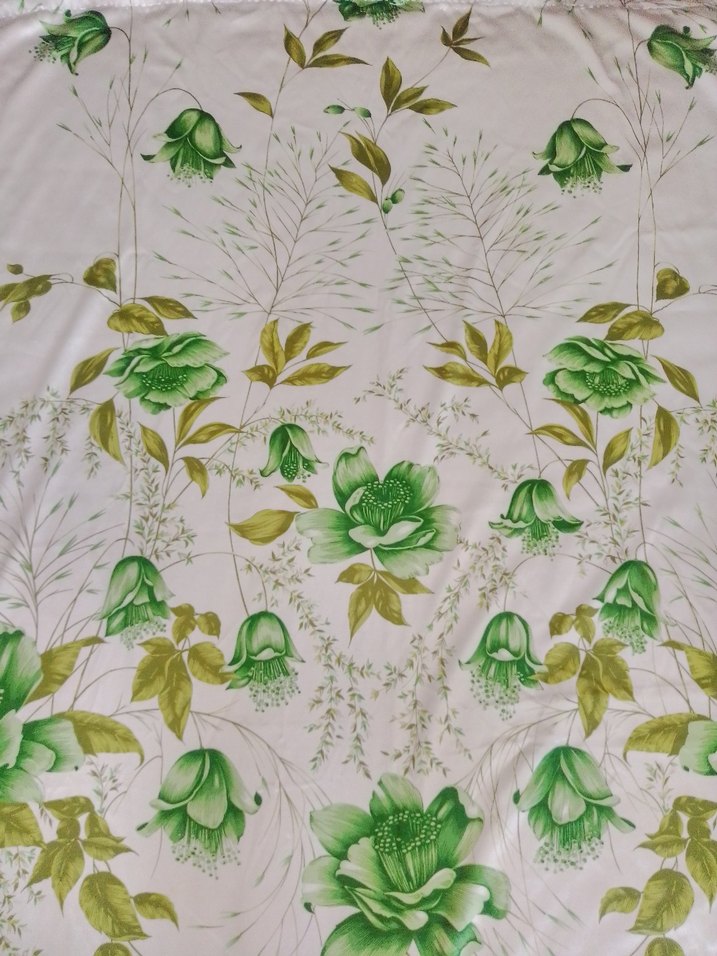 vintace,,az kullanılmış, ipek saten, gramajli bir perde.eni1,30,cm boyu 2,25 cm , kornisli.