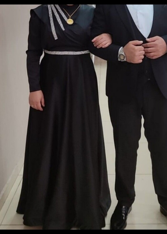 Temizleme yapıldı birkere giyildi kiralamak isteyen olursa temizleyip gonderilecek şekilde 600 TL satış fiyatı 1200tl dir eşarp benden hediye olacaktır aksesuarları ile birlikte gönderilecektir 44. -46 bedene. Uyumludur kilo aldığım için satıyorum