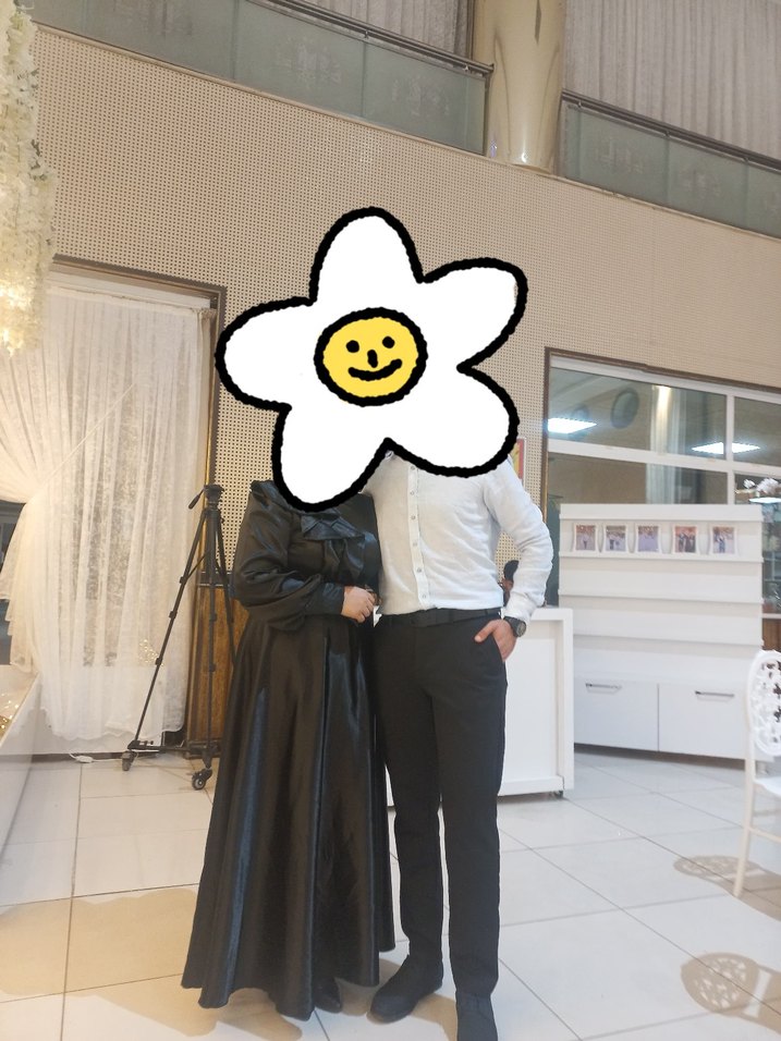 Parlak siyah kumaştan, notalı yaka ve uzun kollu elbise bir kere giydim tertemiz