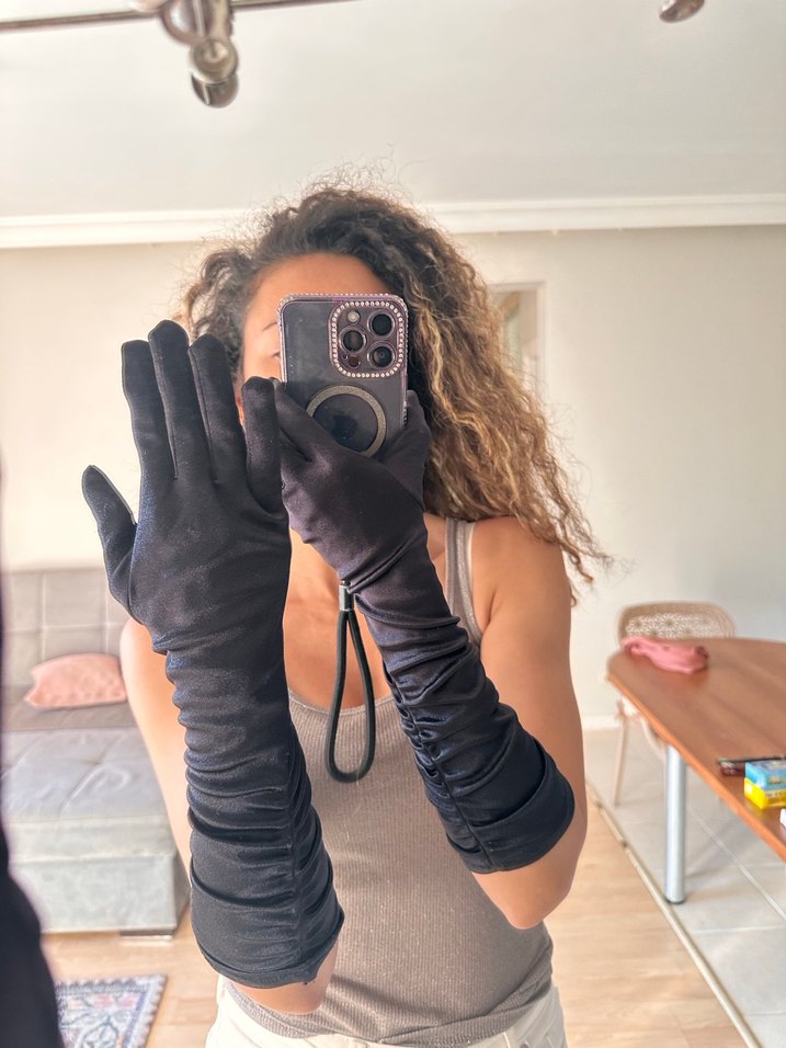 Saten siyah Kadın Eldiveni