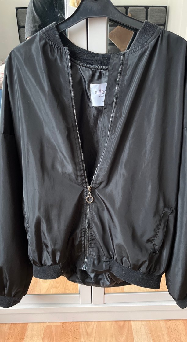 Saten siyah parlak kumaştan, fermuarlı ve uzun kollu, rahat kesim midi boy kadın yagmurluk Trendy casual ve streetwear tarzına uygundur. Standart beden