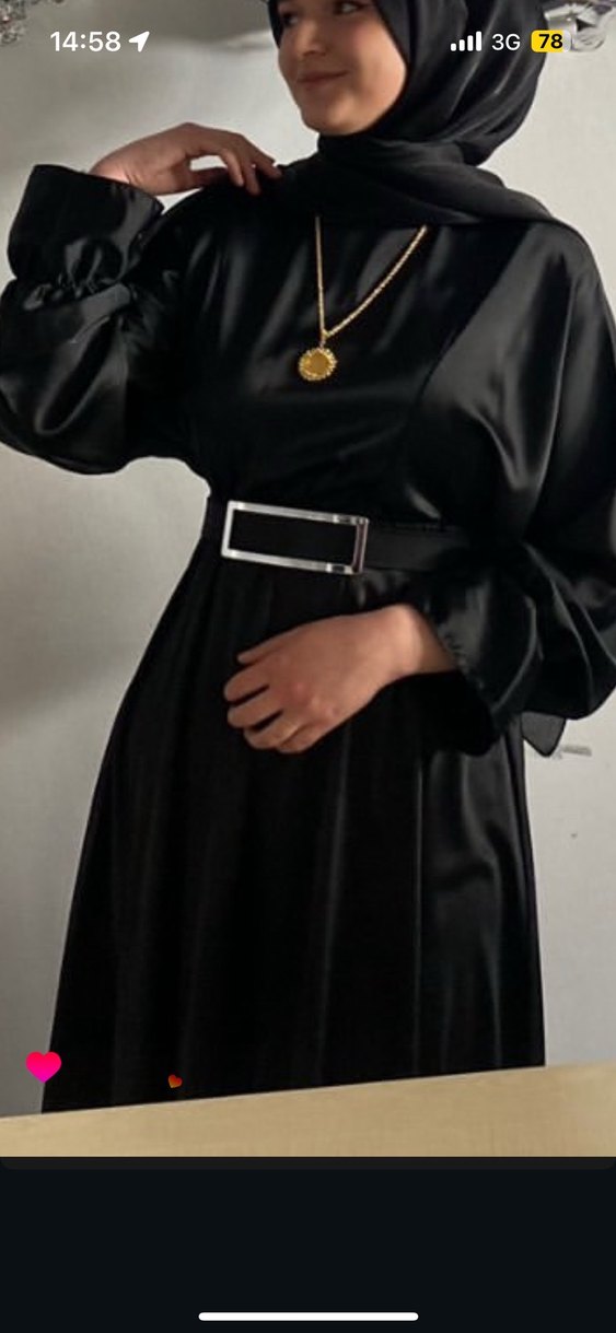 Saten Siyah Kemerli Uzun Kadın Elbise