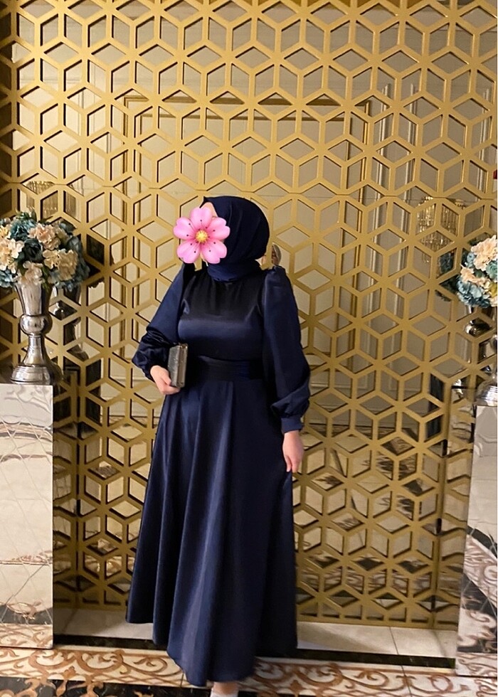 Saten tesettür balon kol abiye elbise