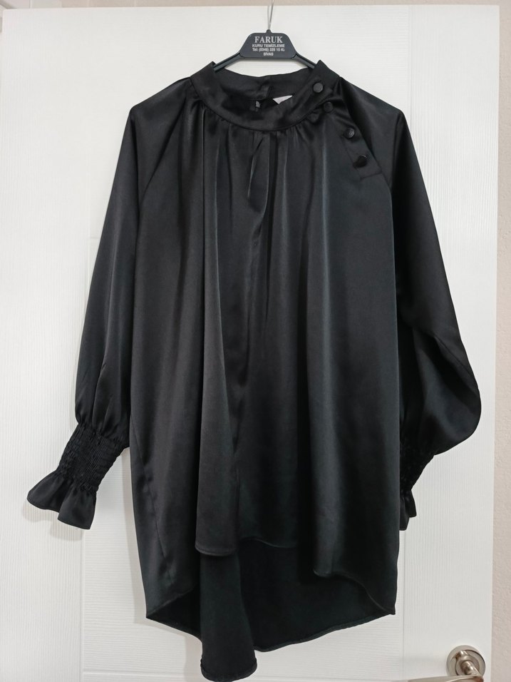 saten tunik kaliteli bir ürün terletme yapmaz etikette 44 yazıyor ama iki kol arası 60 cm büyük geldihi içi satıyorum