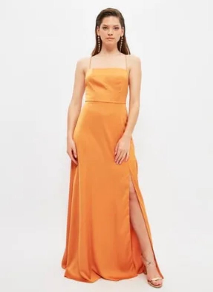 Bir kere giyildi sadece, saten şık bir elbise, sırt detayı var son resimde ekledim