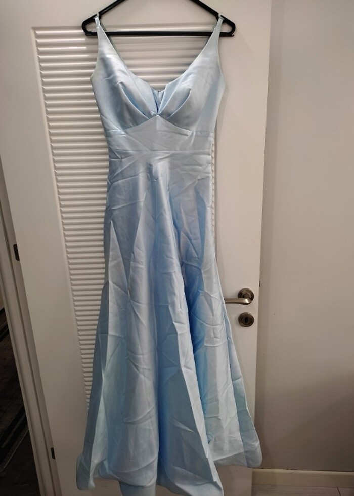üstü dar kalip ama belden aşağı bol olan prenses model abiye elbise bir kez giyildi ama dolapta çok kırışmış kesin alıcı olursa ütüleyip gönderirim buz mavisi rengindedir.
