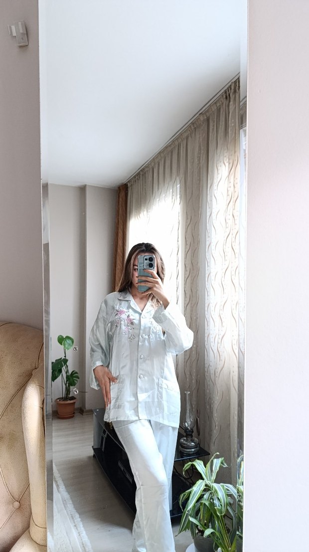 saten vintage Pijama Takımı