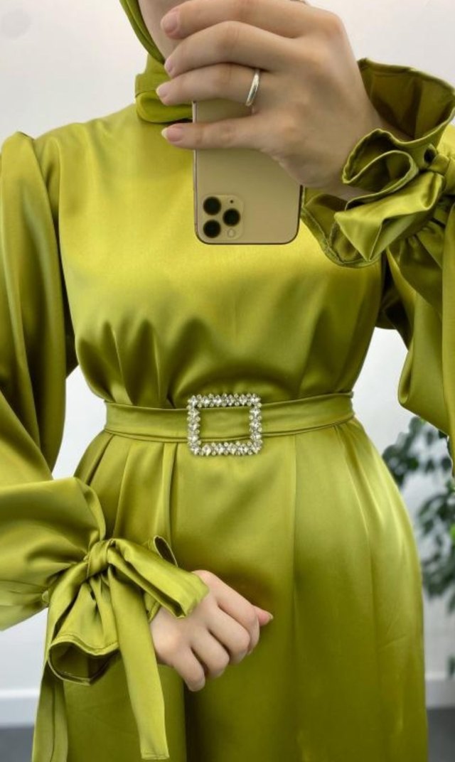 Saten yağ yeşili abiye