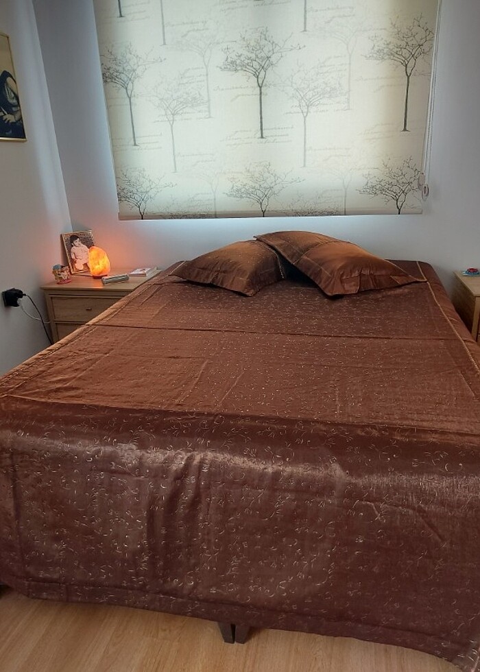 Kızıma aldım bir defa kullandı çok yeni durumda En 255 Boy 255 2 tane yastığı var 80-60 Saten koyu kahverengi