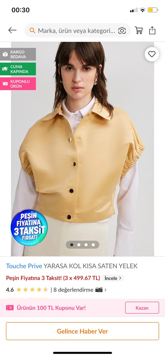 Touche prive marka şık bir yelek hiç giymedim sarı olanı 38 ve 40 bedene uygun