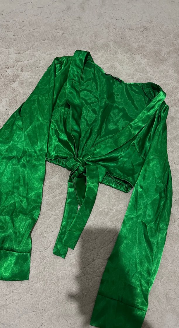 Az kullanıldı. Önden bağlamalı Saten Crop,Bluz Beden 36