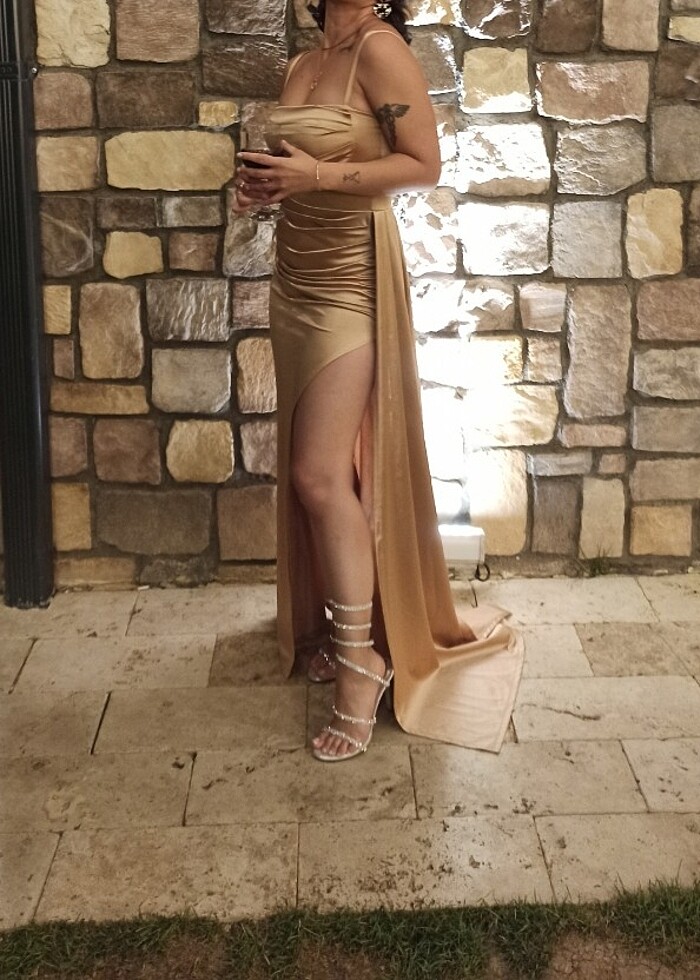 Saten yırtmaçlı abiye