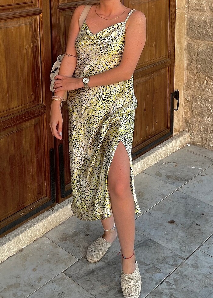 Saten yırtmaçlı elbise
