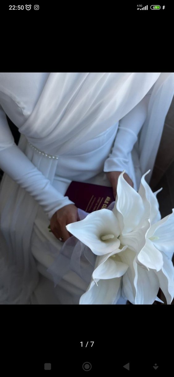 elbise boyu 158 cm benim ölçülerim boyum 1.68 cm kilom 52 bel ölçü 72cm kalca ölçü 100cm üst beden uzunluğu 37 cm. özel dikimdir krep kumaş pelerini tüldür . son görsele dikkatli bakabilirsiniz #tesettürnikahelbisesi #tesettürnikah #gelinlik
