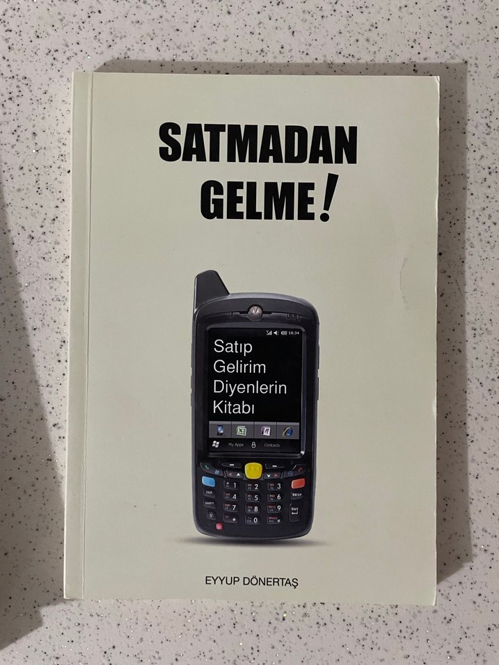 Eyyup Dönertaş'ın yazdığı 'Satmadan Gelme!' kitabı, kapakta gri ve camel renkli telefonla satış ve gelir konularını vurguluyor.