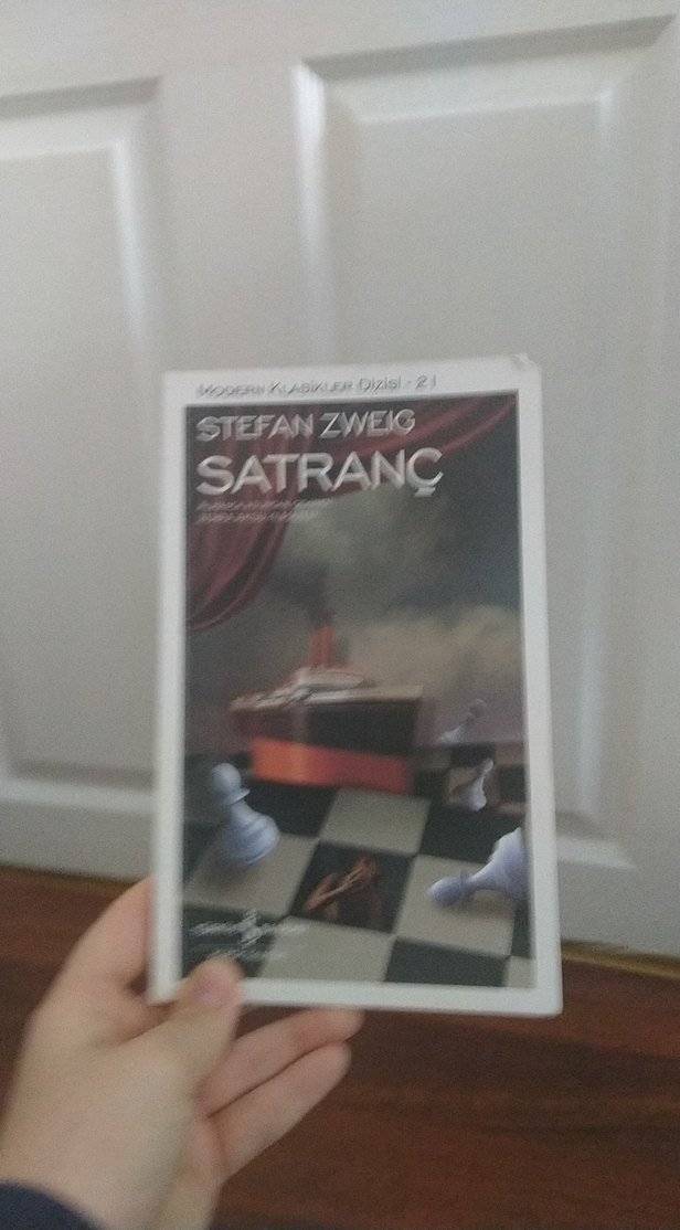 Stefan Zweig'in "Satranç" romanı, psikolojik derinlik ve insan çatışmasını anlatıyor. Kapakta satranç tahtası ve gemi figürleri yer alıyor. kitabın ilk sayfasında sedece isim yazıyor.