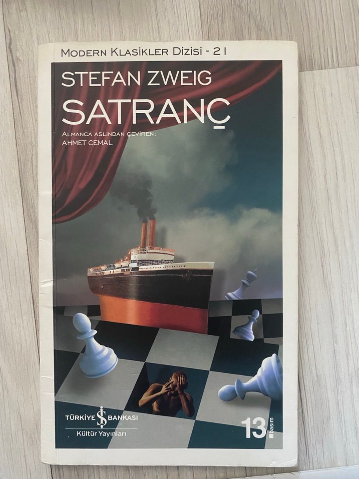 Stefan Zweig'in "Satranç" kitabı, Ahmet Cemal çevirisiyle Modern Klasikler Dizisi'nin 21. kitabıdır. Kapakta gemi ve satranç taşları yer alıyor.