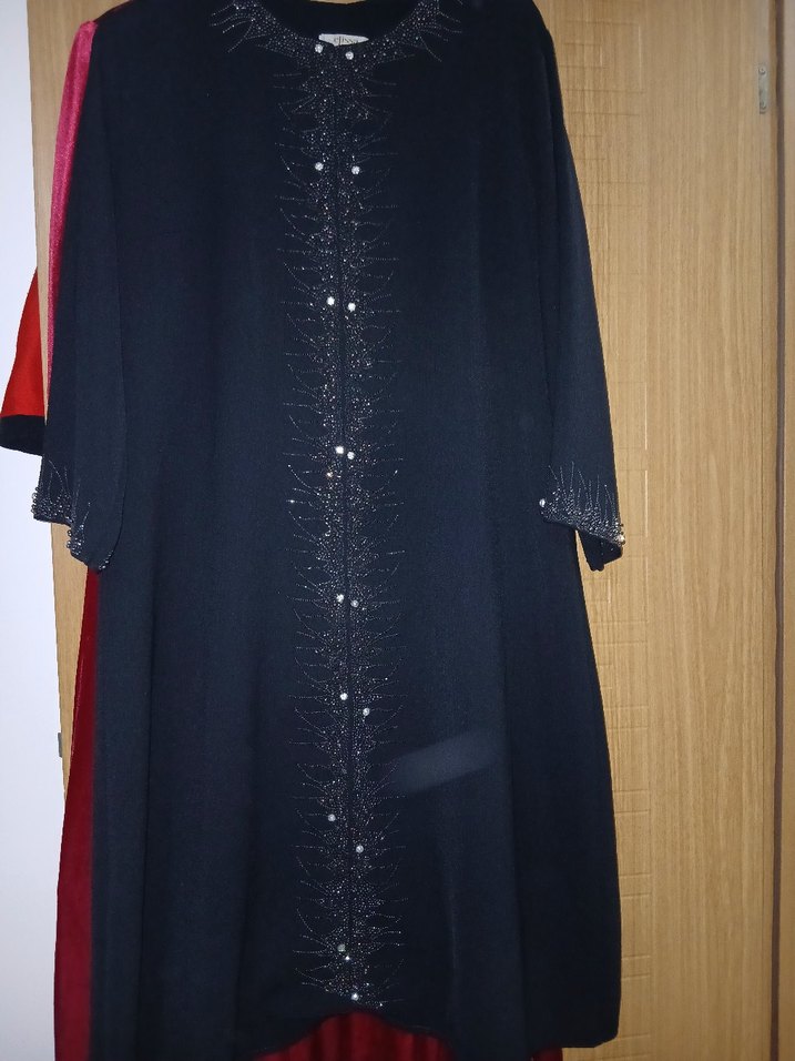 Uzun kollu, işlemeli siyah uzun tunik Dökümlü, ipeksi kumaş ve düzenli kesimle düğünler için uygun ürünün göğüs ölçüsü 65 boy ölçüsü 1.40