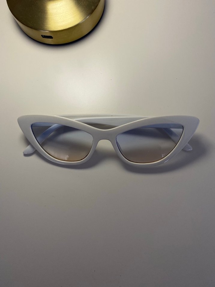 Saydam beyaz çerçeveli, gri tonlu lenslere sahip kadın güneş gözlüğü. Minimalist ve retro tarzı bohem görünümle birleştirir. ️