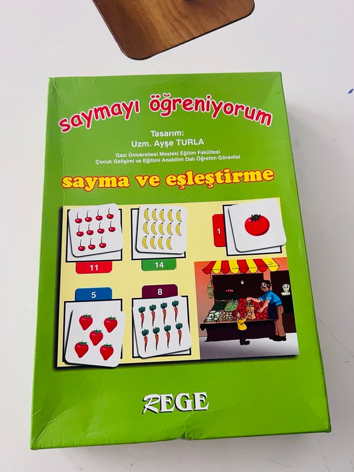 Uzm. Ayşe Turla tasarımı, çocuklar için sayma ve eşleştirme kartlarıyla sayı öğrenimini destekleyen eğitici oyuncak. Hiç kullanılmamıştır. İade yoktur.