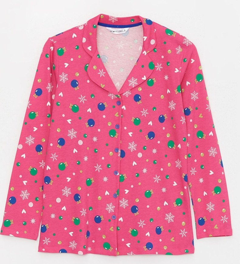 LC WAIKIKI Desenli Pembe Uzun Kollu Kadın Pijama Takımı