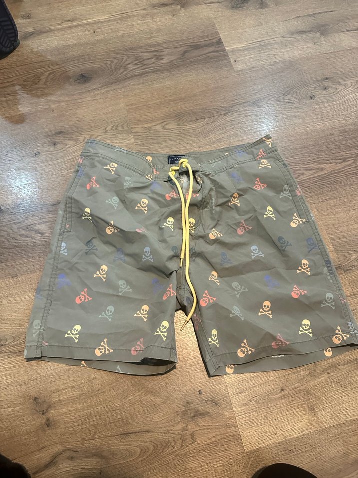 Renkli kafatası desenli, erkek mayo şortu, plaj ve sokak stili için uygundur. ️
