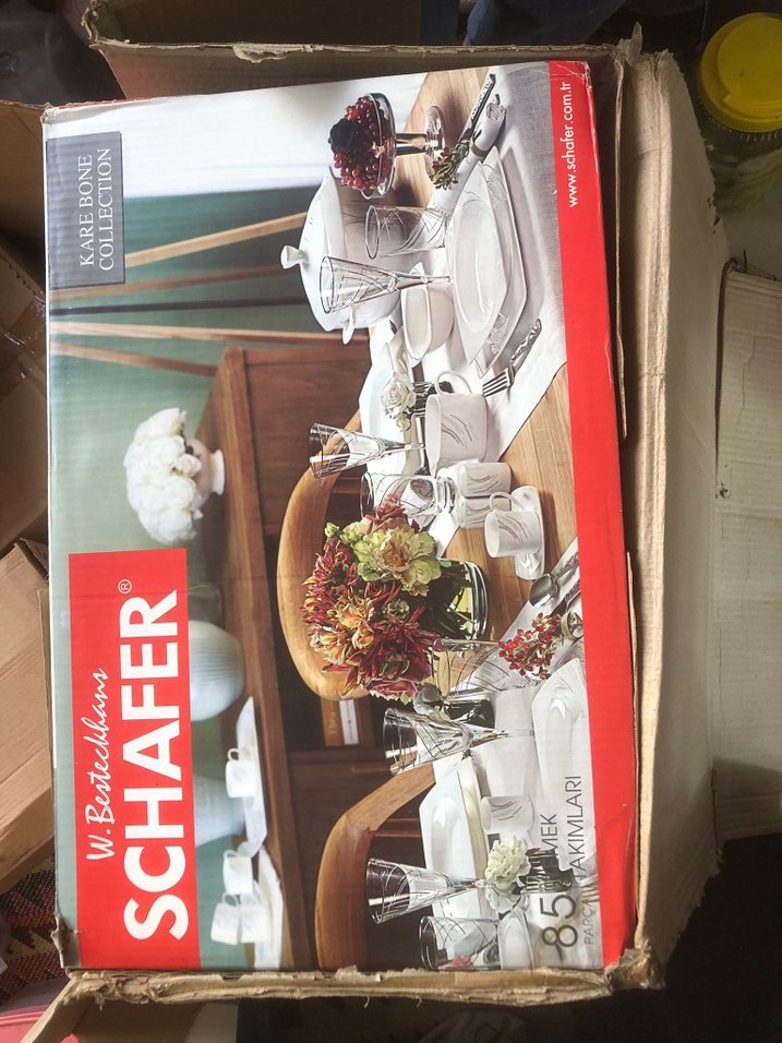 Schafer markasına ait 85 parçadan oluşan yemek takımı, beyaz tabaklar üzerinde canlı gri bohem tarzı desenlere sahiptir. ️