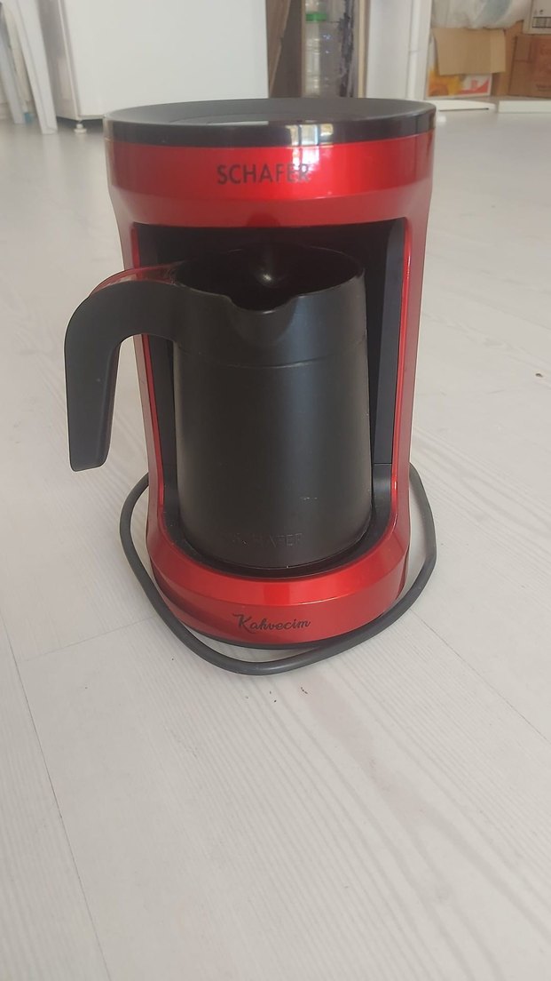 SCHAFER marka kahve makinesi koyu kırmızı gövde ve siyah kulplu çıkarılabilir sürahisi ile kompakt tasarıma sahiptir. ☕çok temiz çok kullanılmadı yılda gelen bir iki misafir dışında pek kualnilamdi . sıfırı 5.bin civarı